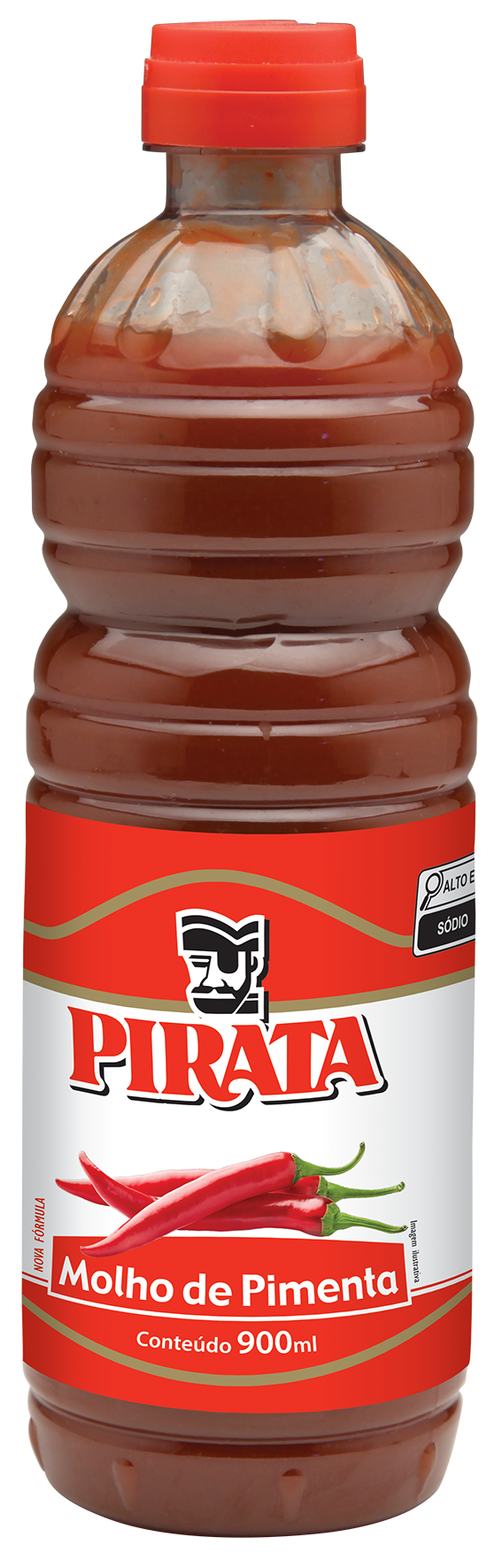 Água, Vinagre, Pimenta dedo de moça, Polpa de tomate, Sal, Açúcar, Pimenta malagueta, Realçador de sabor glutamato monossódico, Estabilizantes (goma guar e goma xantana), Conservantes (benzoato de sódio e sorbato de potássio) e Corante caramelo IV.
