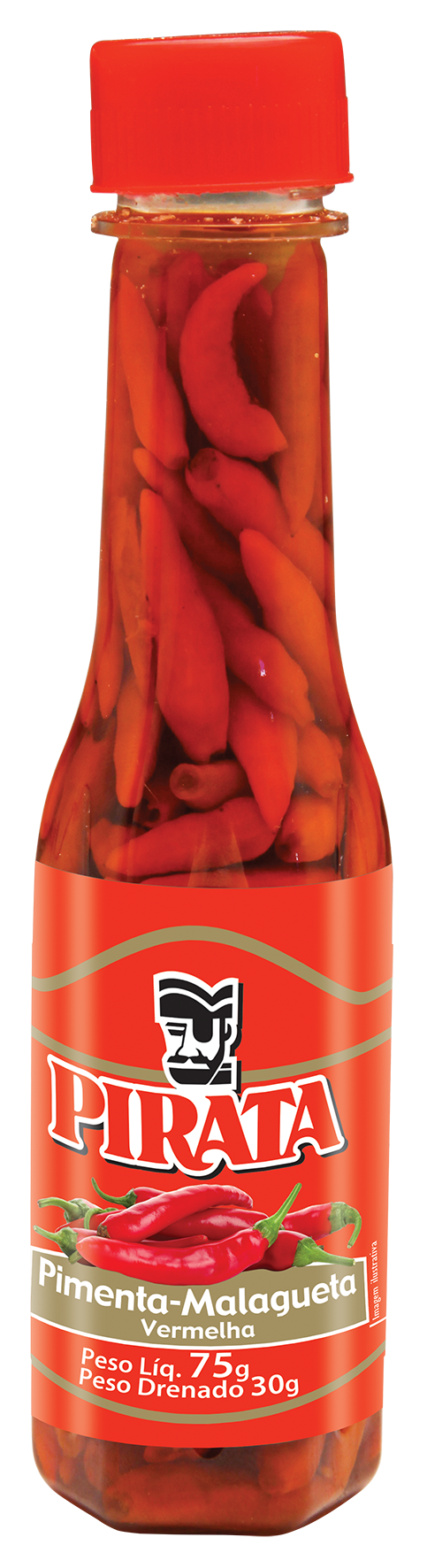 Pimenta malagueta vermelha, salmoura (água e sal) e vinagre.