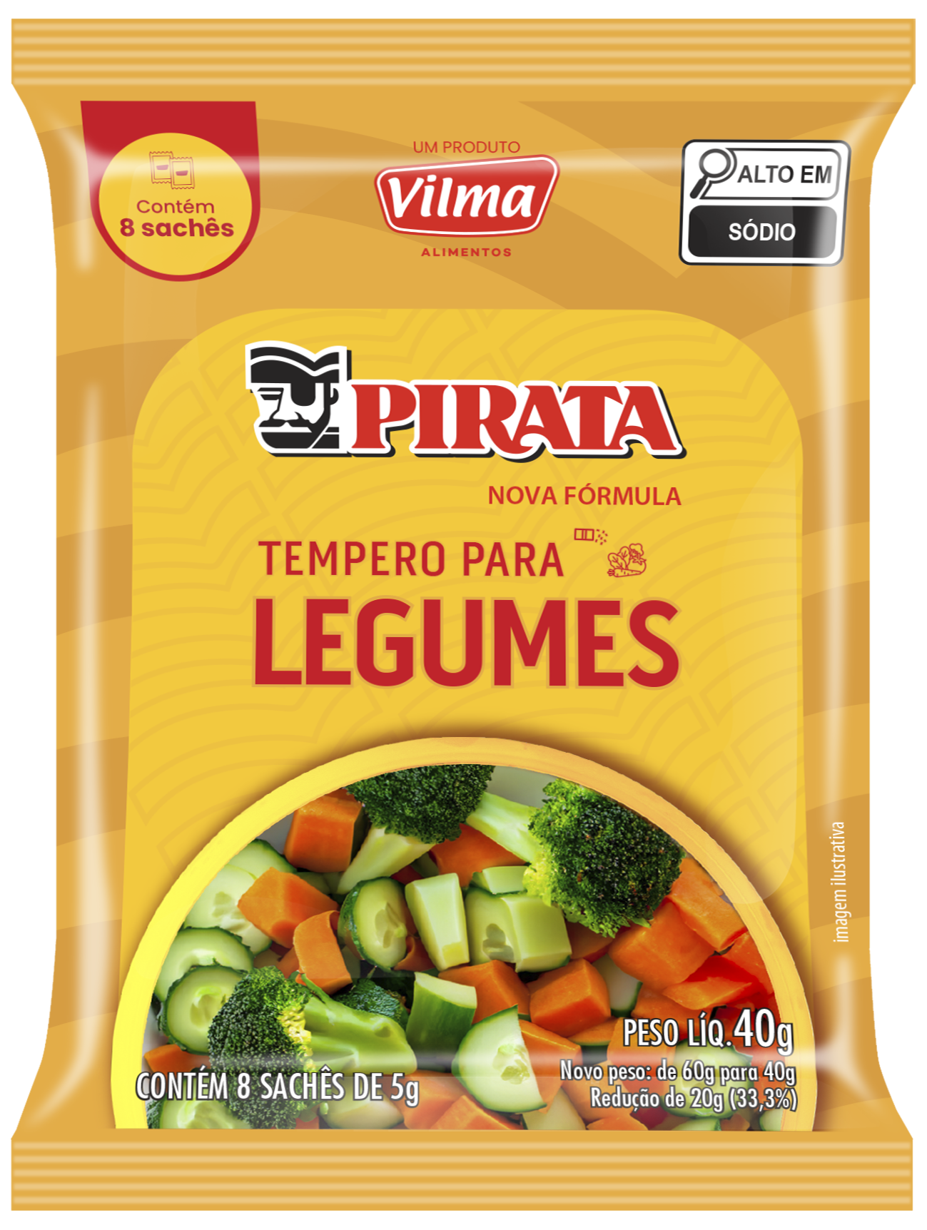 Sal, Maltodextrina, Alho em pó, Salsa em pó, Cebola em pó, Condimento preparado de alho, Pimenta do reino preta em pó (ALIMENTO TRATADO POR PROCESSO DE IRRADIAÇÃO), Cúrcuma em pó, Folha de louro em pó, Cebolinha verde em pó, Realçadores de sabor (glutamato monossódico, inosinato dissódico e guanilato dissódico), Corantes (caramelo IV, curcumina e betacaroteno sintético) e Antiumectantes (dióxido de silício e fosfato tricálcico).